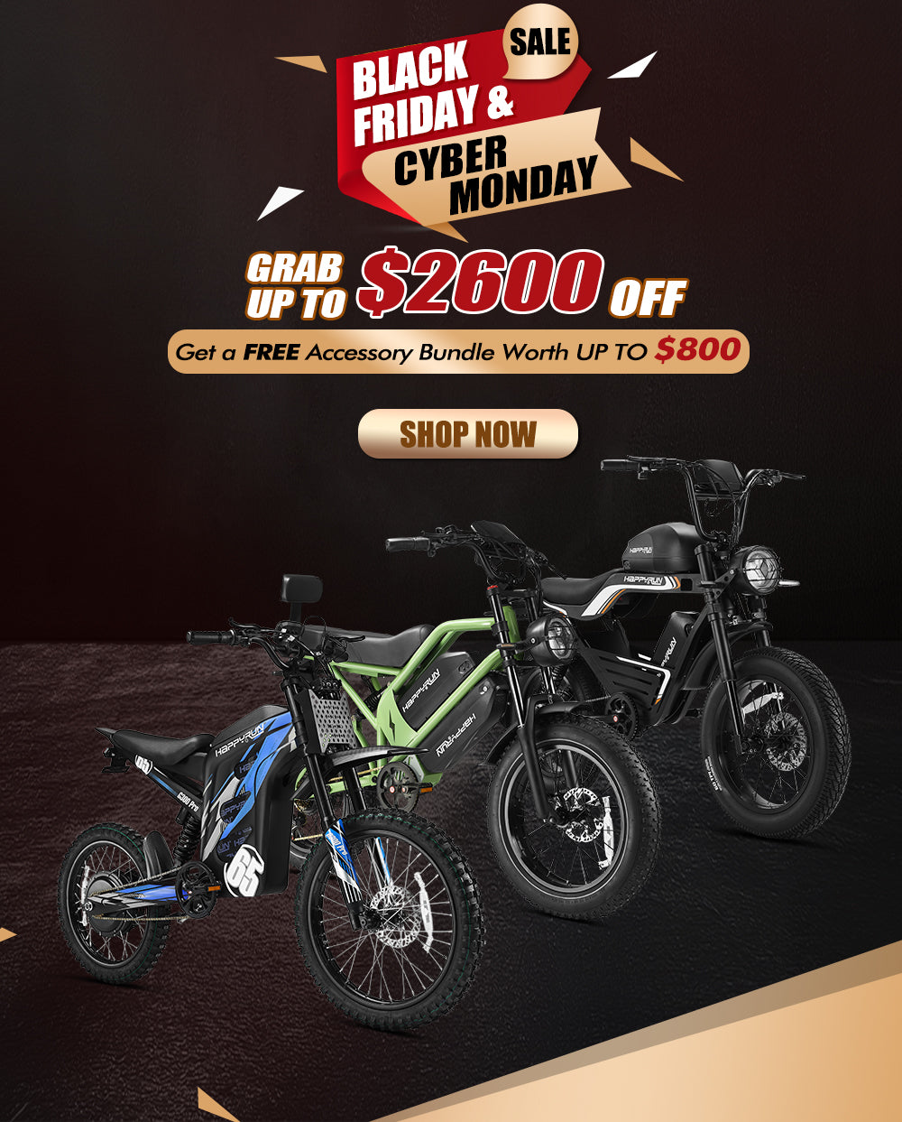 HappyRun is dedicated to building high performance electric bikes that exceed expectations. Our products include electric dirt bikes, fat tire electric bikes, long-range off-road electric bikes, cargo electric bikes, and professional-grade accessories. Since its inception, HappyRun has been enhancing the riding experience with innovative engineering technologies that allow users to push the boundaries of urban commuting and off-road adventures. Every bike we build will be a reliable companion for exploring the world-whether it's an asphalt highway, a steep gravel hill, or a muddy trail.