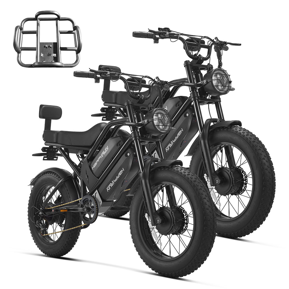Within a $2000 budget, the HappyRun series offers several premium choices. The G70 cargo ebike ($1399) comes with a dual-battery system for long-distance rides. The G70 Pro ($1699) features dual 1000W motors with 5000W peak power, making it perfect for two-person rides. The G100 ($1099) has a retro design and a 38 mph top speed. The G60 Pro ($1199) offers a moped-style frame, a large-capacity battery, and dual hydraulic brakes—great for off-road trails.